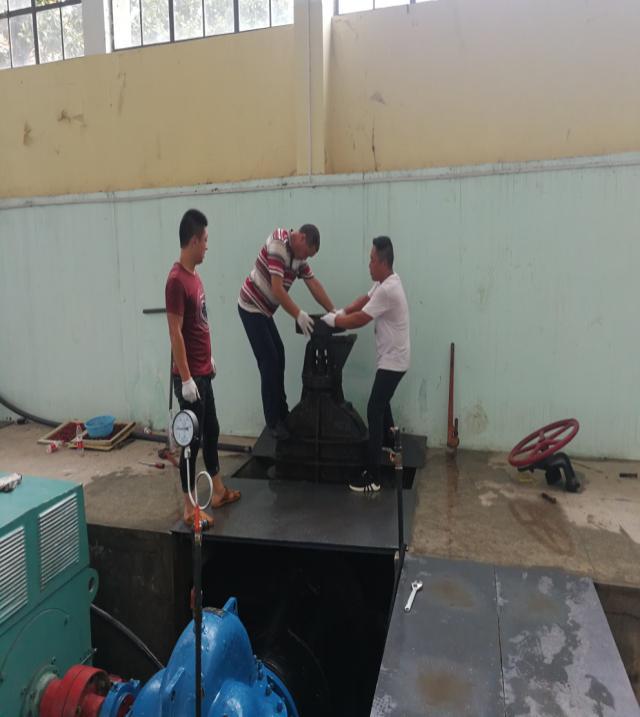 即便時(shí)至夜晚,泵房的溫度也讓人感到悶熱難耐,大汗淋漓,但維修師傅們?nèi)徊活欉@些,聚精會神地專注于手上的工作,齊心協(xié)力,連續(xù)奮戰(zhàn),終于在第二天凌晨三點(diǎn)左右維修完畢。待一切設(shè)備正常運(yùn)行后,已是凌晨5點(diǎn)了,天已蒙蒙亮,但大家并不感到疲憊,而是有一種搶修勝利后的喜悅從心底油然而生,因?yàn)榇蠹业呐Ω冻?,確保了襄城居民的正常用水,辛苦也值了!